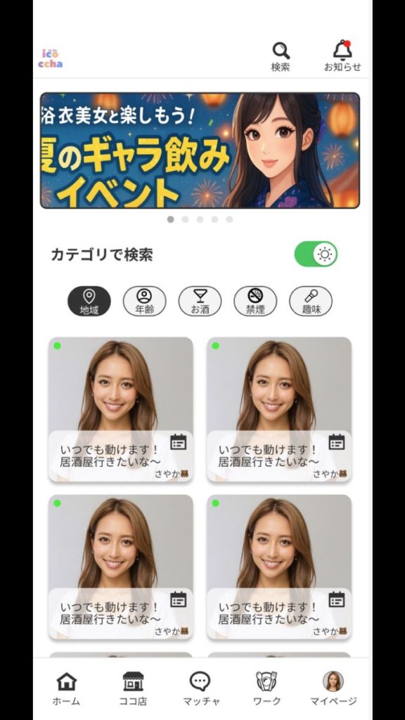 完成品ギャラ飲みアプリシステム